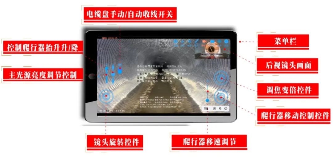 前后視更清晰,收線速度匹配:前后視光源強度更高,成像更清晰;爬行器后退的速度和線纜盤收線的速度一致,回收過程不壓線。