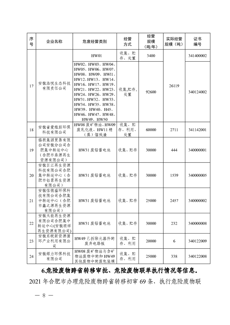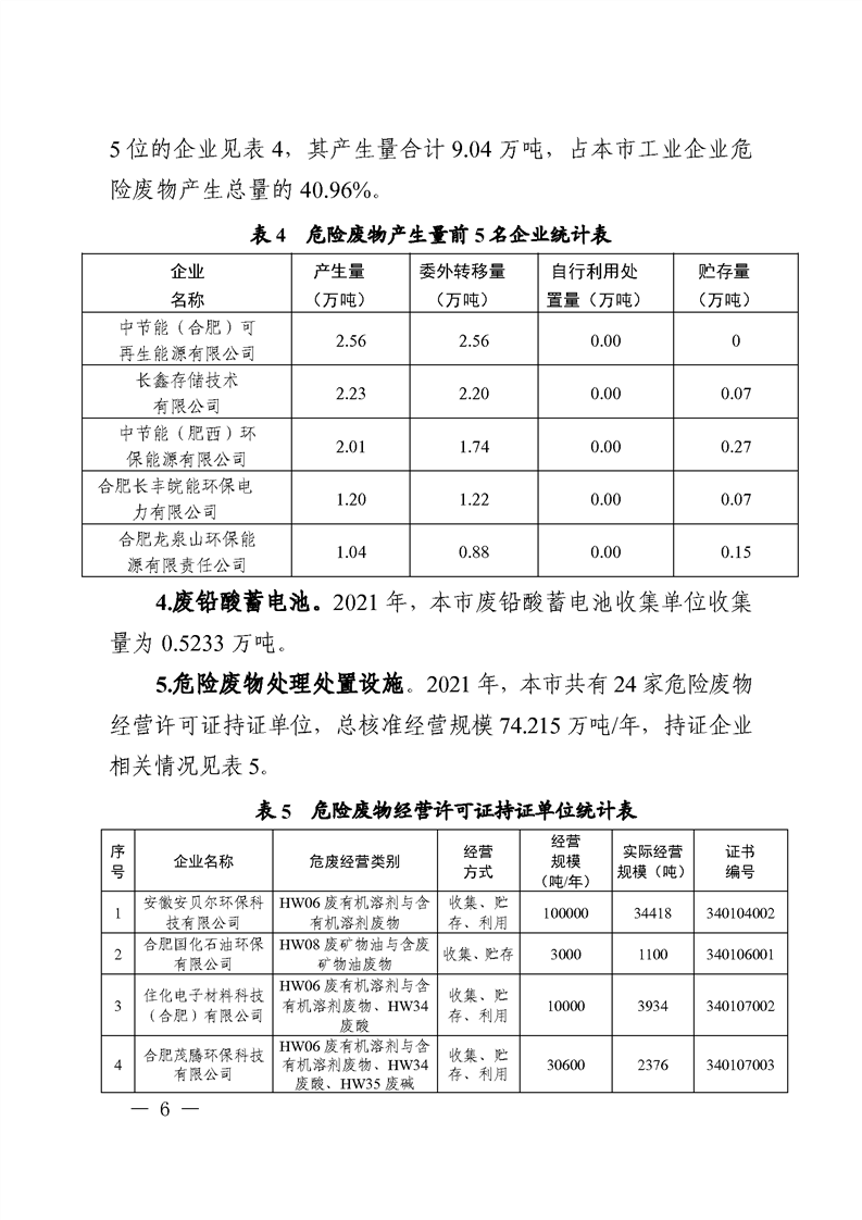 強(qiáng)化危險(xiǎn)廢物管理。2021年,全市工業(yè)危險(xiǎn)廢物產(chǎn)生量為22.47萬(wàn)噸,其中生活垃圾焚燒廠飛灰7.34萬(wàn)噸。委外利用處置量為20.89萬(wàn)噸、自行處置利用量0.49萬(wàn)噸、貯存量1.29萬(wàn)噸。全市共有24家危險(xiǎn)廢物經(jīng)營(yíng)許可證持證單位,總核準(zhǔn)經(jīng)營(yíng)規(guī)模74.215萬(wàn)噸/年。全市醫(yī)療廢物產(chǎn)生量為1.15萬(wàn)噸,無害化處理率達(dá)到100%。
