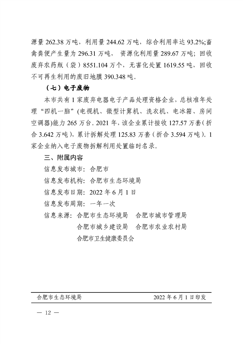 根據(jù)《大中城市固體廢物污染環(huán)境防治信息發(fā)布導(dǎo)則》(原國(guó)家環(huán)境保護(hù)總局公告2006年第33號(hào))要求,日前,合肥市生態(tài)環(huán)境局向社會(huì)公開發(fā)布2021年合肥市固體廢物污染環(huán)境防治信息公告,提高公眾對(duì)固體廢物污染環(huán)境防治工作的認(rèn)識(shí),擴(kuò)大公眾參與固體廢物環(huán)境管理的途徑。