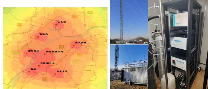 該溫室氣體試點(diǎn)監(jiān)測(cè)系統(tǒng)設(shè)在南京大學(xué)仙林校區(qū),利用現(xiàn)有觀測(cè)塔在75米、50米、25米三個(gè)高度進(jìn)行梯度采樣,實(shí)時(shí)監(jiān)測(cè)主要溫室氣體(CO2和CH4)濃度。該站點(diǎn)點(diǎn)位選址、儀器設(shè)備采樣分析及數(shù)據(jù)質(zhì)控均按照生態(tài)環(huán)境部《碳監(jiān)測(cè)評(píng)估試點(diǎn)工作方案》要求執(zhí)行,是江蘇省生態(tài)環(huán)境監(jiān)測(cè)系統(tǒng)中首個(gè)符合城市溫室氣體高精度監(jiān)測(cè)點(diǎn)位要求的站點(diǎn),填補(bǔ)了城市高精度溫室氣體監(jiān)測(cè)的空白,并首次實(shí)現(xiàn)了溫室氣體的梯度自動(dòng)監(jiān)測(cè)。