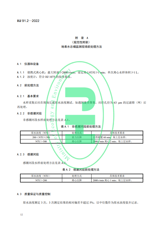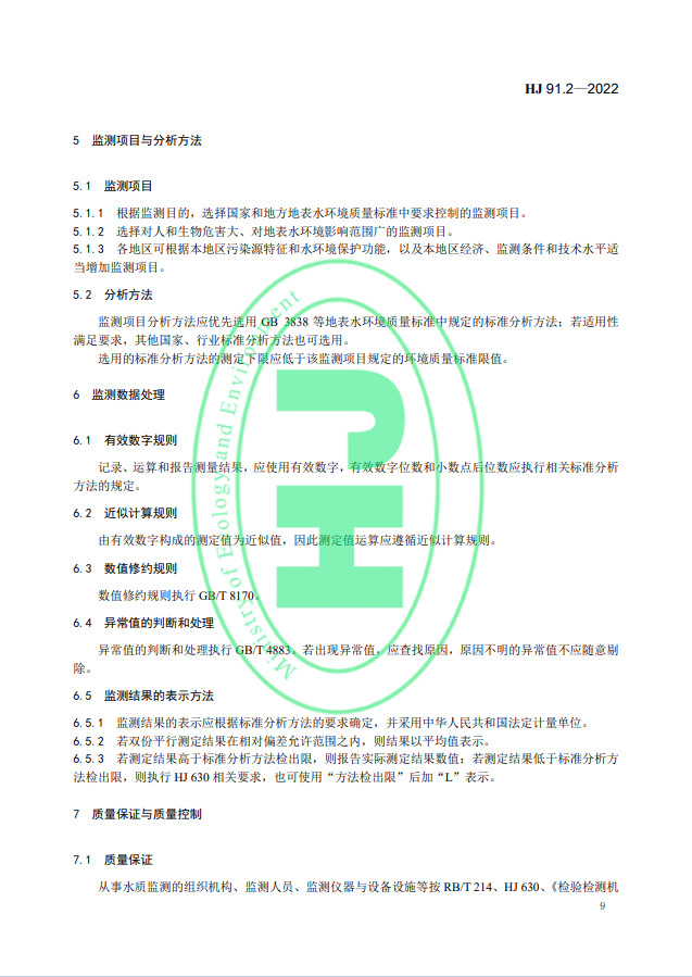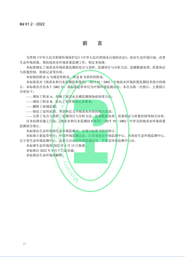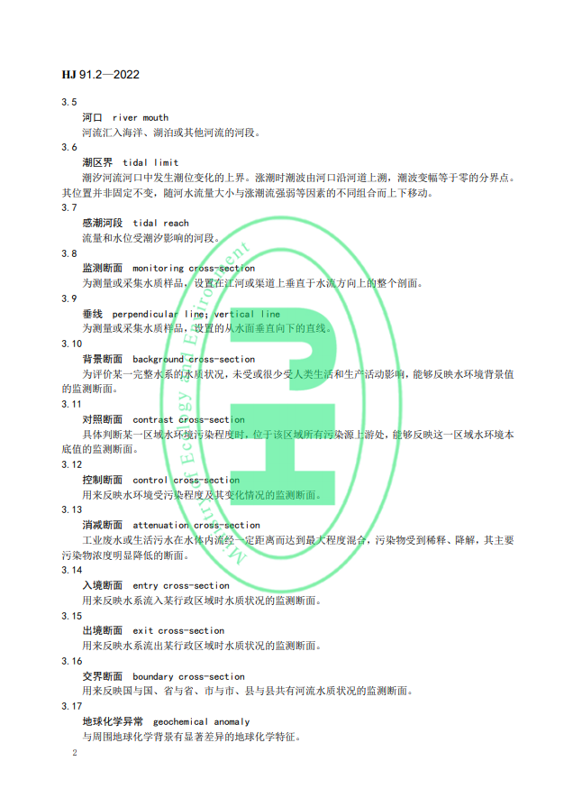 標準號:HJ 91.2—2022部分代替 HJ/T 91—2002