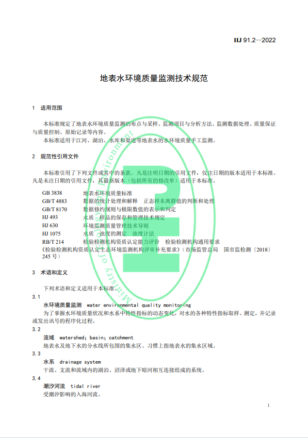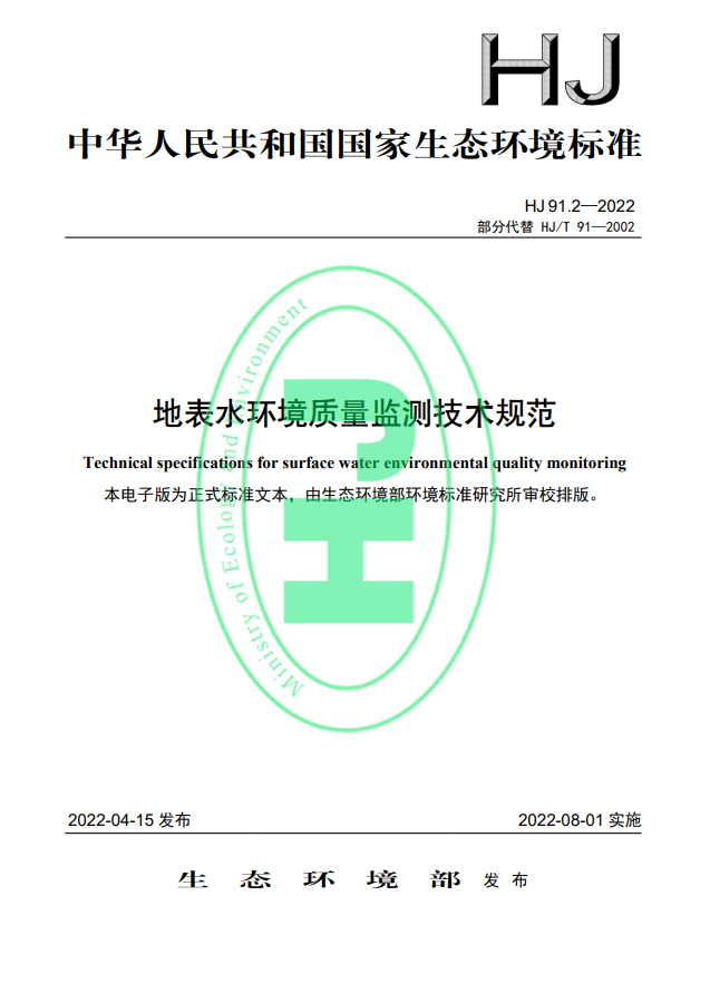 近日,生態(tài)環(huán)境部發(fā)布了《地表水環(huán)境質(zhì)量監(jiān)測技術(shù)規(guī)范(HJ 91.2—2022部分代替 HJ/T 91—2002)》,此標準將于2022年8月1日起實施。全文如下: