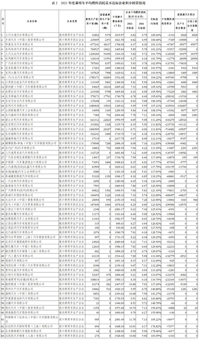 原標(biāo)題:2021年度中國(guó)乘用車(chē)企業(yè)平均燃料消耗量與新能源汽車(chē)積分情況公告