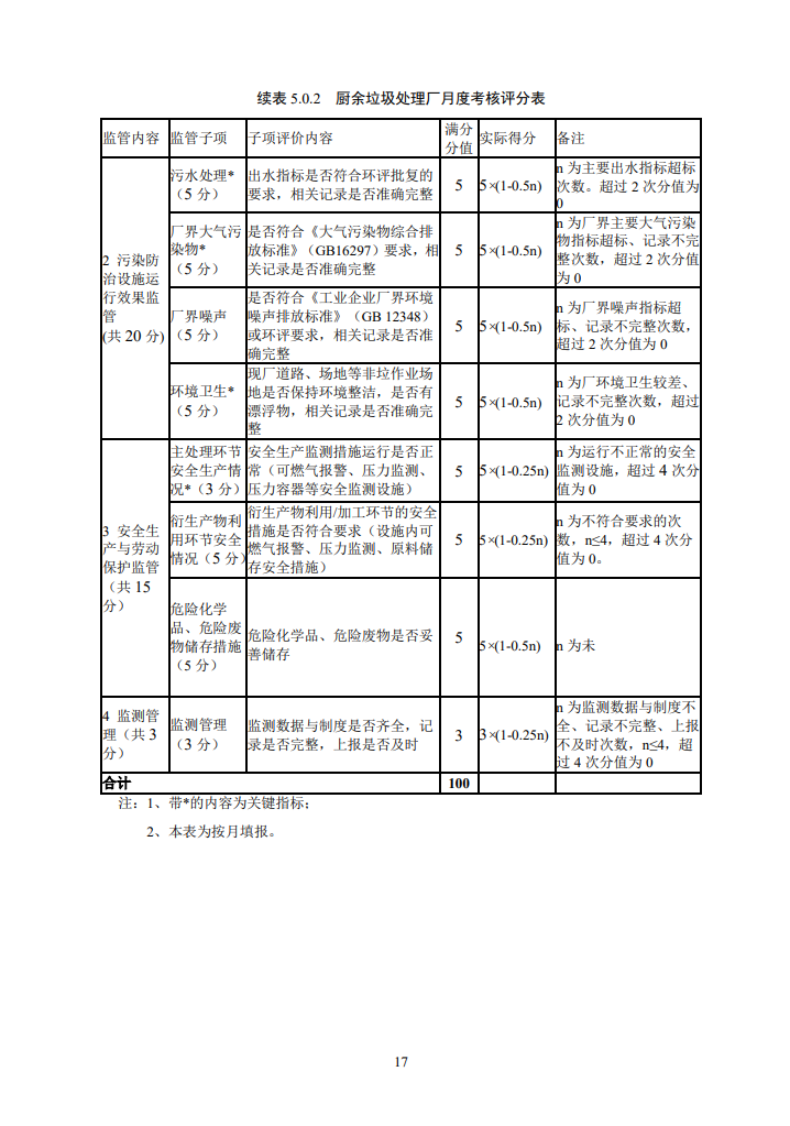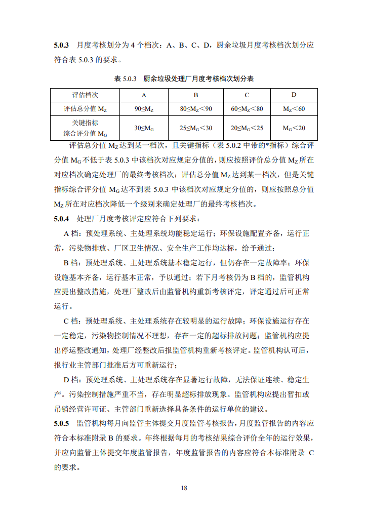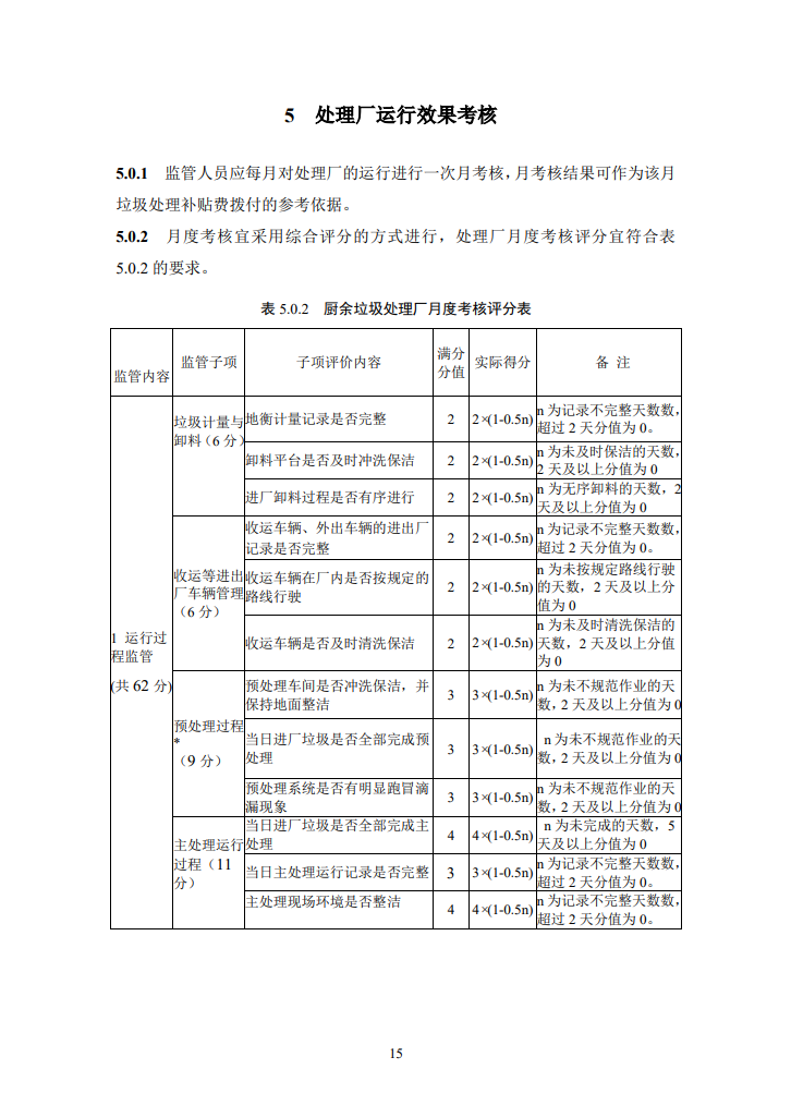 標準指出,監(jiān)管人員應每月對處理廠的運行進行一次月考核,月考核結(jié)果可作為該月垃圾處理補貼費撥付的參考依據(jù)。