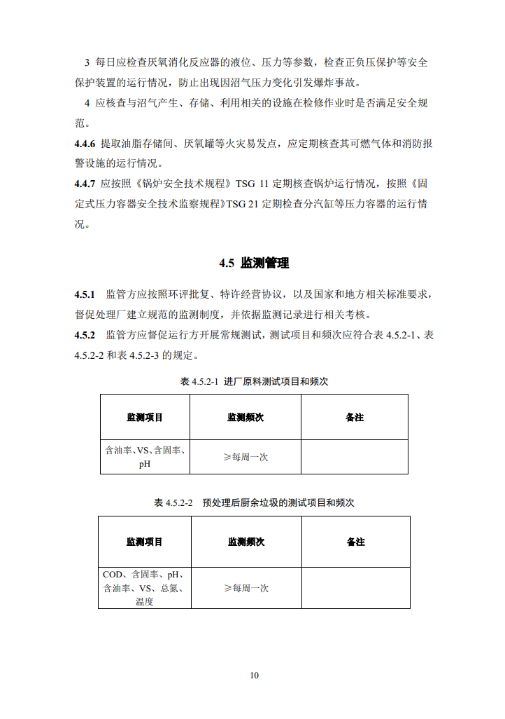 其中,主處理采用厭氧消化工藝時,應對厭氧消化系統(tǒng)、沼氣凈化及存儲設施的運行進行監(jiān)管,并符合下列規(guī)定: