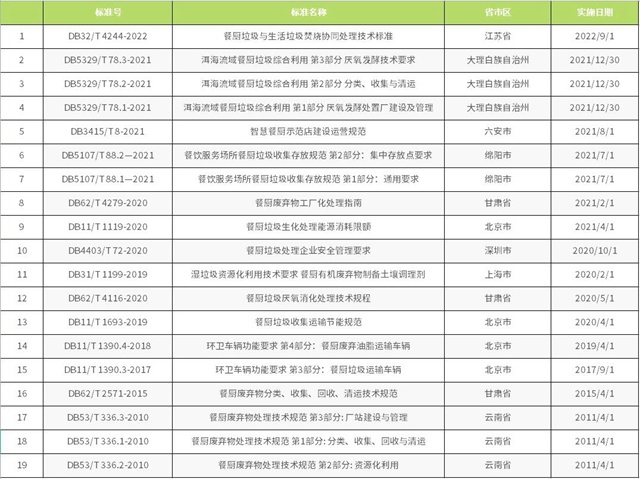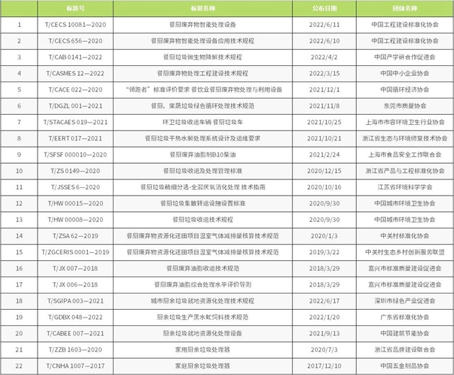 截至目前,已備案的餐廚垃圾相關(guān)標準有《餐廚垃圾車》QC/T 935-2013、《餐廚棄物處理機》JB/T 12342-2015、《餐廚廢棄物油水自動分離設(shè)備》CJ/T 478-2015、《餐廚垃圾自動分選系統(tǒng) 技術(shù)條件》JB/T 13166-2017、《餐廚廢棄物生產(chǎn)肥料中生物腐植酸含量測定方法》HG/T 5603-2019和《土壤調(diào)理劑及使用規(guī)程 餐廚廢物原料》NY/T 3935-2021。
