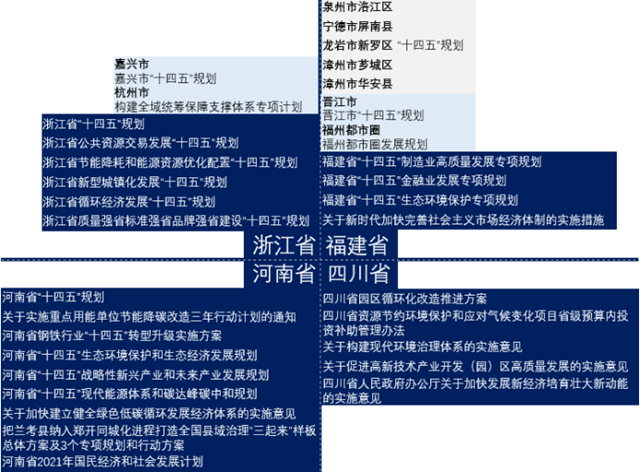 注:深藍(lán)色表示省級(jí)政策支持,淺藍(lán)色表示市級(jí)政策支持,淺灰色表示區(qū)級(jí)政策支持