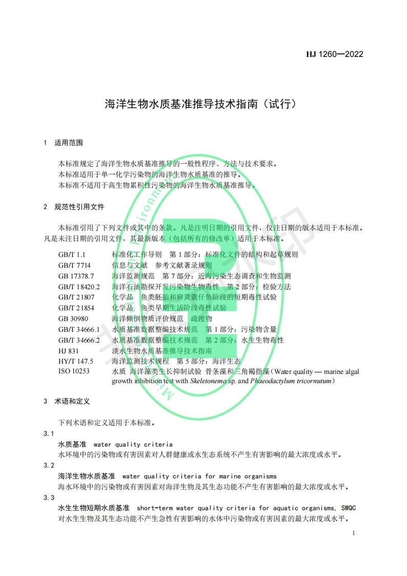 《海洋生物水質(zhì)基準(zhǔn)推導(dǎo)技術(shù)指南(試行)》.pdf