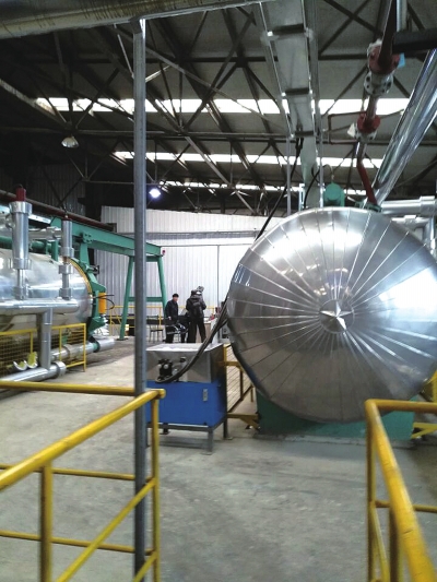 進(jìn)入廠區(qū),現(xiàn)代化的廠房、辦公樓和景觀綠化,似乎和餐廚垃圾處理工廠不相符。更讓人意外的是,從設(shè)有辦公、實(shí)驗(yàn)、生產(chǎn)控制中心、會議室、生產(chǎn)流程演示、產(chǎn)品成列等功能的現(xiàn)代化辦公樓出來后,走進(jìn)生產(chǎn)車間,除了可見4個大型餐廚垃圾喂料口外(即餐廚垃圾運(yùn)輸車傾倒口),全是大型箱體、罐體,以及各種粗細(xì)的管子相連,一道道工序?qū)崿F(xiàn)了自動化,看不見一點(diǎn)餐廚垃圾,這里像一座現(xiàn)代化的啤酒車間?!巴耆珜?shí)現(xiàn)了自動化?!?/p>