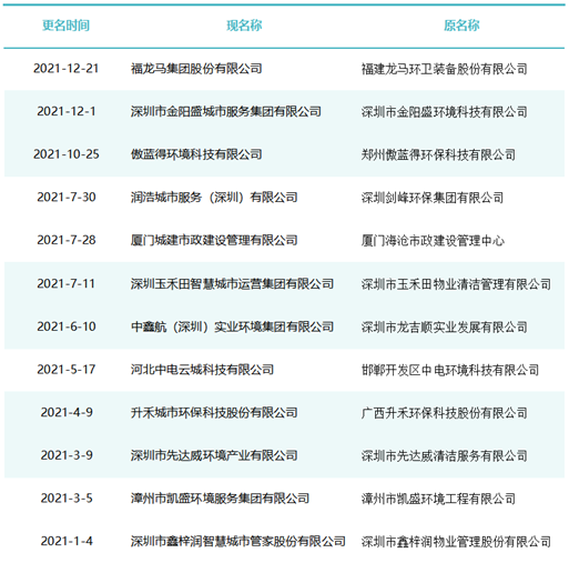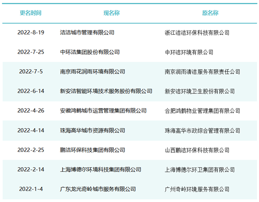 作為玉禾田[300815]最主要的環(huán)衛(wèi)項(xiàng)目投標(biāo)主體,玉禾田物業(yè)清潔公司在名稱上用“智慧城市運(yùn)營(yíng)”替換“物業(yè)清潔”,則是希望轉(zhuǎn)型邁向智慧城市運(yùn)營(yíng)商之路。司南君在對(duì)近八年的更名規(guī)律進(jìn)行總結(jié)與梳理發(fā)現(xiàn),環(huán)衛(wèi)企業(yè)“更名潮”大概可以分為三個(gè)階段。第一波更名潮從2015-2018年。第一波更名潮追求專業(yè)化發(fā)展道路,這個(gè)時(shí)期的更名熱詞是“環(huán)境服務(wù)”、“環(huán)境科技”、”環(huán)保產(chǎn)業(yè)“、“環(huán)保技術(shù)”,一大批清潔公司、保潔公司、環(huán)衛(wèi)公司、物業(yè)公司更名為“環(huán)境服務(wù)公司”、“環(huán)境科技公司”、”環(huán)保技術(shù)公司“。第二波更名潮從2019年到2021年。第二波更名潮集體轉(zhuǎn)向城市綜合服務(wù)方向。這一時(shí)期的更名熱點(diǎn)是“城市管理”、“城市服務(wù)”、“城市管家”、“智慧城市運(yùn)營(yíng)”、“公共事業(yè)管理”等,用這些熱詞替代“環(huán)保技術(shù)”、“環(huán)衛(wèi)服務(wù)”、“環(huán)境科技”、“環(huán)境服務(wù)”等傳統(tǒng)環(huán)衛(wèi)詞匯。進(jìn)入2022年度,環(huán)衛(wèi)企業(yè)迎來(lái)第三波更名潮。今后一定時(shí)期,環(huán)衛(wèi)行業(yè)的發(fā)展將面臨多重挑戰(zhàn),環(huán)衛(wèi)企業(yè)更名也將更富多元化,因此企業(yè)更名也必將根據(jù)每家公司對(duì)行業(yè)發(fā)展的理解認(rèn)識(shí)及自身戰(zhàn)略定位而各有側(cè)重。2015年到2018年是環(huán)衛(wèi)市場(chǎng)化第一波大發(fā)展時(shí)期。圖表1:2018年度更名“百?gòu)?qiáng)企業(yè)”這期間,環(huán)衛(wèi)市場(chǎng)化大閘初步敞開(kāi),PPP模式引入環(huán)衛(wèi)領(lǐng)域,城鄉(xiāng)環(huán)衛(wèi)一體化模式如火如荼,年化額超千萬(wàn)元、合同額超億元的環(huán)衛(wèi)大標(biāo)開(kāi)始批量出現(xiàn),傳統(tǒng)物業(yè)清潔企業(yè)、非環(huán)衛(wèi)類物業(yè)公司大量涌入環(huán)衛(wèi)行業(yè)。圖表2:2017年度更名“百?gòu)?qiáng)企業(yè)”因此,環(huán)衛(wèi)企業(yè)第一波更名潮追求專業(yè)化發(fā)展道路,這個(gè)時(shí)期的更名熱詞是“環(huán)境服務(wù)”、“環(huán)境科技”、”環(huán)保產(chǎn)業(yè)“、“環(huán)保技術(shù)”,一大批清潔公司、保潔公司、環(huán)衛(wèi)公司、物業(yè)公司更名為“環(huán)境服務(wù)公司”、“環(huán)境科技公司”、”環(huán)保技術(shù)公司“。圖表3:2016年度更名“百?gòu)?qiáng)企業(yè)”圖表4:2015年度更名“百?gòu)?qiáng)企業(yè)”這期間有近40家百?gòu)?qiáng)企業(yè)或日后發(fā)展成百?gòu)?qiáng)企業(yè)的環(huán)衛(wèi)公司完成了更名,如福建東飛環(huán)境集團(tuán)有限公司、濱南生態(tài)環(huán)境集團(tuán)股份有限公司、北京慧豐清軒環(huán)境科技集團(tuán)有限公司、河北人和環(huán)境科技有限公司、浙江波普環(huán)境服務(wù)有限公司、深圳市陽(yáng)光三環(huán)生態(tài)環(huán)境股份有限公司、深圳世路源環(huán)境有限公司(深兄環(huán)境)、廣東美保環(huán)境技術(shù)有限公司、泓欣環(huán)境集團(tuán)有限公司等。第二波:從“環(huán)衛(wèi)服務(wù)”到“城市管家”2019年到2021年是“環(huán)衛(wèi)市場(chǎng)化”高潮向“城市大管家模式”的轉(zhuǎn)型期初期。圖表5:2021年度更名“百?gòu)?qiáng)企業(yè)”這期間,環(huán)衛(wèi)市場(chǎng)化從大發(fā)展走向大高潮,城市精細(xì)化管理從“理念”走向“實(shí)踐”,各路國(guó)有物業(yè)公司積極推動(dòng)城市大管家模式,大批頭部物管企業(yè)通過(guò)大并購(gòu)等方式搶灘環(huán)衛(wèi)及城市服務(wù)市場(chǎng)。圖表6:2020年度更名“百?gòu)?qiáng)企業(yè)”由此,順應(yīng)時(shí)代大潮,環(huán)衛(wèi)企業(yè)第二波更名潮集體轉(zhuǎn)向城市綜合服務(wù)方向。這一時(shí)期的更名熱點(diǎn)是“城市管理”、“城市服務(wù)”、“城市管家”、“智慧城市運(yùn)營(yíng)”、“公共事業(yè)管理”等,用這些熱詞替代“環(huán)保技術(shù)”、“環(huán)衛(wèi)服務(wù)”、“環(huán)境科技”、“環(huán)境服務(wù)”等傳統(tǒng)環(huán)衛(wèi)詞匯。圖表7:2019年度更名“百?gòu)?qiáng)企業(yè)”這期間有40余家知名環(huán)衛(wèi)企業(yè)完成了更名,如僑銀城市管理股份有限公司、北控城市環(huán)境服務(wù)集團(tuán)有限公司、深圳玉禾田智慧城市運(yùn)營(yíng)集團(tuán)有限公司、深圳市鑫梓潤(rùn)智慧城市管家股份有限公司、康潔科技集團(tuán)有限公司、西安高科城市服務(wù)管理有限責(zé)任公司、溫州市鹿城區(qū)城市管理服務(wù)有限公司、廣東路通公用事業(yè)管理集團(tuán)有限公司、深圳市金陽(yáng)盛城市服務(wù)集團(tuán)有限公司。第三波:多重挑戰(zhàn)并存轉(zhuǎn)型期進(jìn)入2022年度,環(huán)衛(wèi)企業(yè)迎來(lái)第三波更名潮。這一時(shí)期也將是城市管家模式完成第一輪測(cè)試后的大發(fā)展時(shí)期。圖表8:2022年度更名“百?gòu)?qiáng)企業(yè)”(截止2022年8月份)今后一定時(shí)期,環(huán)衛(wèi)行業(yè)的發(fā)展將面臨多重挑戰(zhàn):