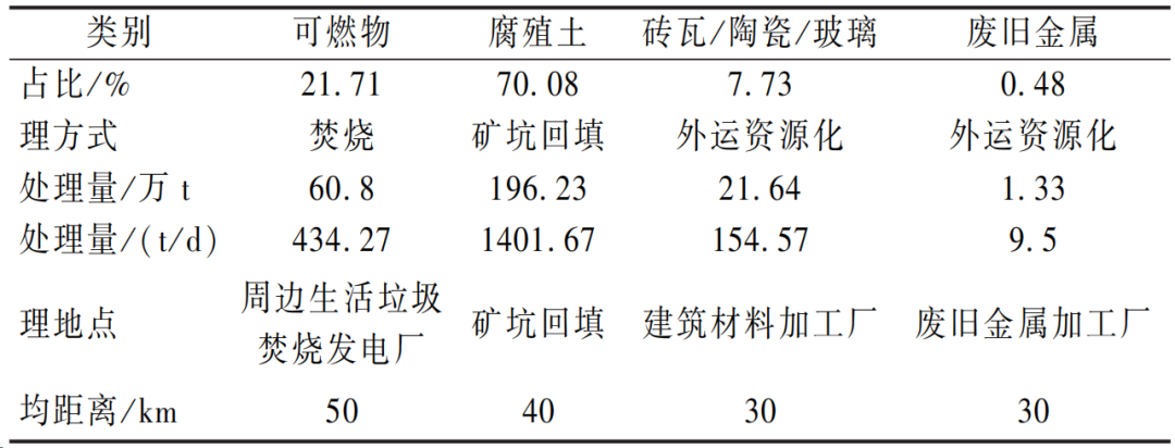 填埋場(chǎng)垃圾濕基低位熱值在 3011.75~5218.28 kJ/kg 范圍內(nèi),平均熱值 4007.59 kJ/kg。參考《城市生活垃圾處理及污染防治技術(shù)政策》及相關(guān)資料,低位發(fā)熱量 <3300 kJ/kg 的垃圾不易采用焚燒處理,在 3300~5000 kJ/kg 的垃圾可以采用焚燒處理,因此本場(chǎng)地垃圾可以采用焚燒處理。但受限于當(dāng)?shù)厣罾贌l(fā)電廠規(guī)模,每天處理陳腐垃圾能力僅為 600 t,280 萬t 的陳腐垃圾全部處理完畢需要約 13 年,處理時(shí)間過長。因此考慮填埋場(chǎng)陳腐垃圾進(jìn)行開挖篩分綜合利用。