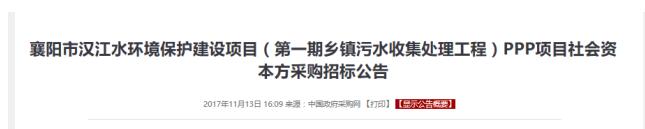 從中國政府采購網(wǎng)獲悉,43億鄉(xiāng)鎮(zhèn)污水治理項目開始招標:襄陽市漢江水環(huán)境保護建設(shè)項目(第一期鄉(xiāng)鎮(zhèn)污水收集處理工程)PPP項目社會資本方采購項目發(fā)布招標公告,公告顯示,項目投資估算約432086.80萬元。