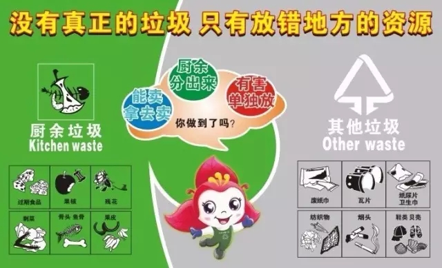 重點對居民日常生活垃圾中可回收利用的資源進行分類。可根據本地垃圾處理設施建設實際情況,采取靈活多樣、簡便易行的分類方法。可由居民將自家產生的“濕垃圾”即廚余垃圾濾出水分后,與廚余以外的“干垃圾”分類收集、分類投放。居民區(qū)可設置專門設施對“濕垃圾”實現(xiàn)就地處理,或由環(huán)衛(wèi)部門、專業(yè)企業(yè)采用專用車輛運至餐廚(廚余)垃圾處理廠,日產日清。也可將“干垃圾”再分為可回收垃圾和其他垃圾。可回收垃圾主要包括廢紙、廢塑料、廢金屬、廢玻璃等有價廢棄物,可由專人進行再次分類,或由再生資源回收企業(yè)進行收運和處置。有條件的居民社區(qū)可對可回收垃圾進一步細分。此外,鼓勵居民自行聯(lián)系再生資源回收企業(yè)回收廢棄電子電器產品等。