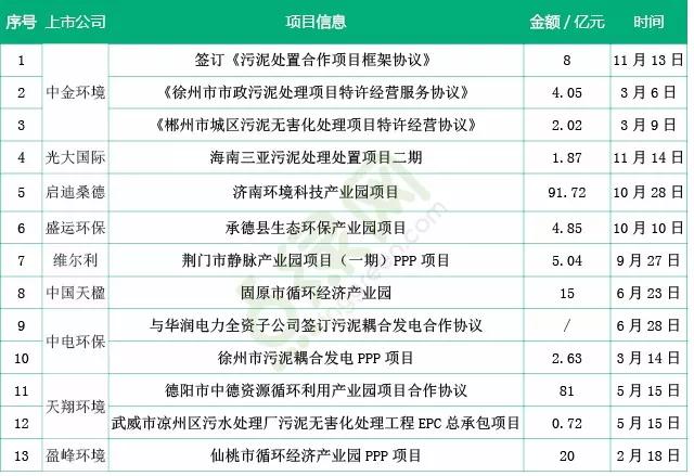 此外,還有光大國際、桑德集團、維爾利、盛運環(huán)保、中國天楹等固廢環(huán)保企業(yè)通過拿簽署產(chǎn)業(yè)園項目合作協(xié)議,實現(xiàn)包括污泥處置在內(nèi)的固體廢物無害化、資源化、一體化處置進程。例如,盛運環(huán)保產(chǎn)業(yè)園項目中污泥處置不僅包括污水處理廠污泥還包括河道污泥等,維爾利的荊門市靜脈產(chǎn)業(yè)園項目污泥處理規(guī)模為245噸/日。