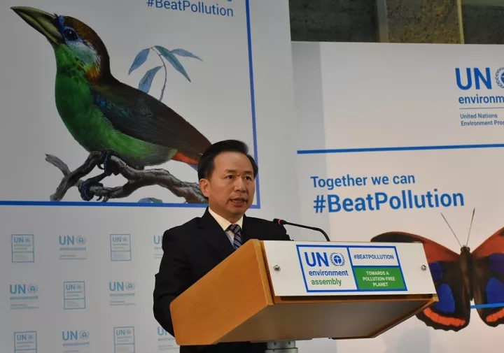 李干杰在大會上作了題為“攜手邁向無污染星球,努力建設(shè)清潔美麗的世界”發(fā)言。