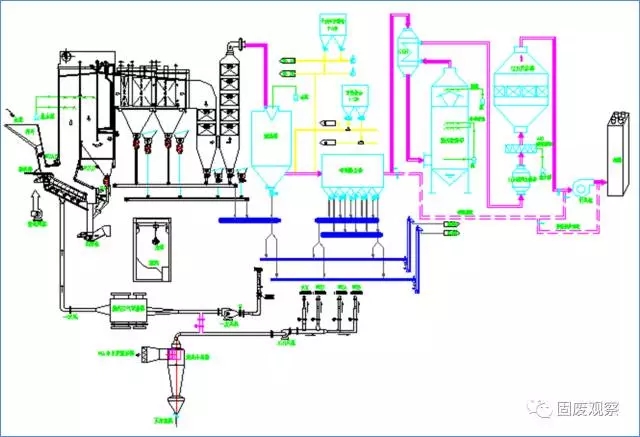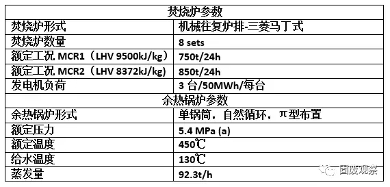 項(xiàng)目一期工程由3x150t/d的逆向推飼馬丁式垃圾焚燒設(shè)備為核心組成三條垃圾焚燒處理生產(chǎn)線,配置7.5MW凝氣式汽輪發(fā)電機(jī)組。煙氣處理采用了循環(huán)流化反應(yīng)+活性炭噴射+布袋除塵+尾氣在線監(jiān)測的半干式循環(huán)流化煙氣處理裝置。