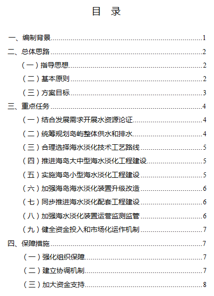 海水淡化技術(shù)在海島普遍推廣應(yīng)用,關(guān)鍵部件和原材料逐步實現(xiàn)國產(chǎn)化,海島海水淡化工程裝備國產(chǎn)化率達到一半以上;海水淡化工程與可再生能源的耦合效率顯著提高,海島海水淡化建設(shè)、運營及管理市場化機制逐步完善。