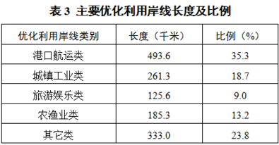 以港口航運功能為主的優(yōu)化利用岸線長度約493.6千米,主要分布在銀洲湖、陽江港、湛江港等;以城鎮(zhèn)工業(yè)功能為主的優(yōu)化利用岸線長度約261.3千米,主要分布在汕頭港東部、交椅灣、廣海灣等;以旅游娛樂功能為主的優(yōu)化利用岸線長度約125.6千米,主要分布在大亞灣北部、水東灣北部等;以農(nóng)漁業(yè)功能為主的優(yōu)化利用岸線長度約185.3千米,主要分布在神泉港東部、長沙灣東部、大鵬澳、通明海南部等。