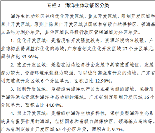 對海洋優(yōu)化開發(fā)區(qū)域,調整相鄰陸域優(yōu)化產(chǎn)業(yè)和人口布局。海洋優(yōu)化開發(fā)區(qū)主要分布在珠三角、湛江市區(qū)和汕頭市區(qū)等。規(guī)劃對汕頭市區(qū)、珠三角和湛江市區(qū)海洋優(yōu)化開發(fā)區(qū)域相鄰區(qū)域的產(chǎn)業(yè)和人口布局進行優(yōu)化與調整,涉及面積1946平方千米。