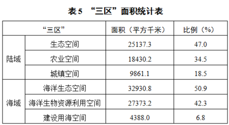 對海洋限制開發(fā)區(qū)域,相應陸域禁止開展對海洋生態(tài)有較大影響的開發(fā)活動。海洋限制開發(fā)區(qū)域包括海洋漁業(yè)保障區(qū)和重點海洋生態(tài)功能區(qū)。限制陸域開發(fā)利用活動,持續(xù)推進陸域污染防治,實施污染物達標入海,保護海洋生態(tài)環(huán)境。為保持海陸主體功能銜接一致,調整相接陸域生態(tài)和生活空間,涉及面積5941平方千米。