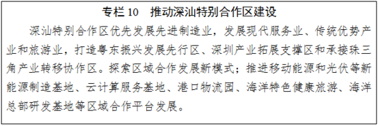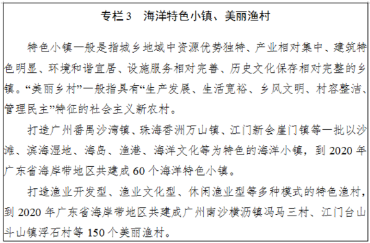 城市發(fā)展。積極落實粵港澳大灣區(qū)發(fā)展戰(zhàn)略,以改善宜居、宜業(yè)、宜游為出發(fā)點和落腳點,創(chuàng)新機制體制,把粵港澳大灣區(qū)建成經(jīng)濟發(fā)達、生態(tài)文明,綠色、宜居、宜業(yè)、宜游的世界級城市群。積極推進深圳、廣州全球海洋中心城市建設以及珠海區(qū)域性海洋中心城市建設。