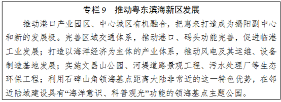 建設廣東省新型城鎮(zhèn)化綜合試驗區(qū)、產(chǎn)城融合示范區(qū)、區(qū)域協(xié)調發(fā)展先行區(qū);打造世界級新能源新材料聚集地、全國重要石化能源基地、粵東專業(yè)物流中心、粵東醫(yī)教高地、重要濱海旅游目的地;沿海綠色防護帶重要組成部分。