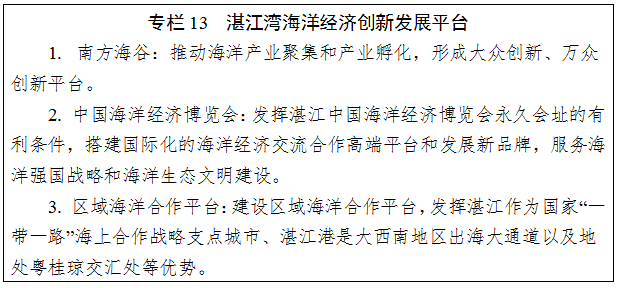 產(chǎn)業(yè)發(fā)展。加快推進海洋經(jīng)濟創(chuàng)新發(fā)展示范城市及海洋經(jīng)濟示范區(qū)建設。推動鋼鐵、石化產(chǎn)業(yè)及其園區(qū)發(fā)展,建設東海島高端臨?,F(xiàn)代制造業(yè)集群;推動海洋工程裝備制造和海洋生物醫(yī)藥等海洋產(chǎn)業(yè)示范基地發(fā)展以及物流園區(qū)和產(chǎn)學研合作園區(qū)建設;發(fā)揮漁業(yè)資源優(yōu)勢,發(fā)展深加工漁業(yè),推動遠洋漁業(yè)基地建設;對接北部灣地區(qū)和海南國際旅游島,共同打造粵桂瓊濱海旅游“金三角”,將其建設成為具有國際影響的休閑度假旅游目的地。在新寮群島、外羅水道、徐聞等海域布局海上風電,推動海上風電等新能源產(chǎn)業(yè)發(fā)展。
