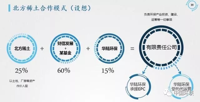 以北方稀土環(huán)保治理為例來分析,2018年新增的環(huán)保需求為:2000方/天氯化銨廢水處理零排放項(xiàng)目、約10萬噸/年的低放射性固體廢棄物處置、約4000噸/年的普通固體廢棄物處置,預(yù)計(jì)總投資額達(dá)1個(gè)億。目前,北方稀土環(huán)保產(chǎn)業(yè)已投入6.7億,每年運(yùn)營費(fèi)用5000萬,環(huán)保企業(yè)參差不齊,達(dá)產(chǎn)效果僅達(dá)40%。針對(duì)北方稀土的環(huán)保需求,華陸環(huán)保提出了基于環(huán)?!傲恪蓖顿Y的合作模式。