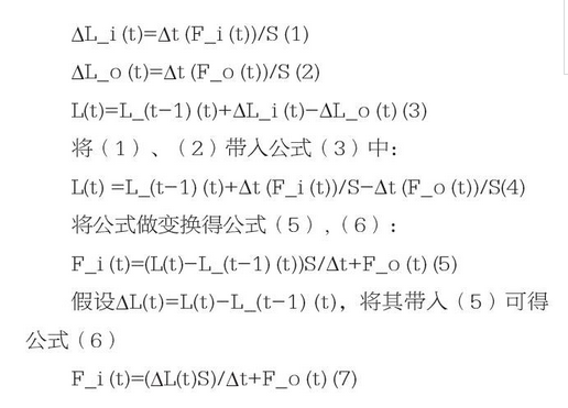 我們假設(shè)t時(shí)刻來水流量為Fi(t),集水池的液位就為L(zhǎng)(t),S為集水池的底面積,膜進(jìn)水量Fo(t),ΔL_i(t)為來水液位增量,L_(t-1)(t)為t-1時(shí)的液位,ΔL_o(t)為超濾系統(tǒng)處理產(chǎn)量對(duì)業(yè)務(wù)液位增量??傻弥?/p>