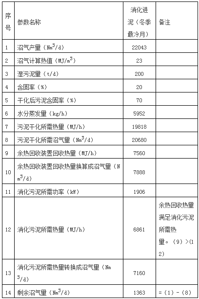 表1 污泥厭氧消化+干化系統(tǒng)能量平衡表