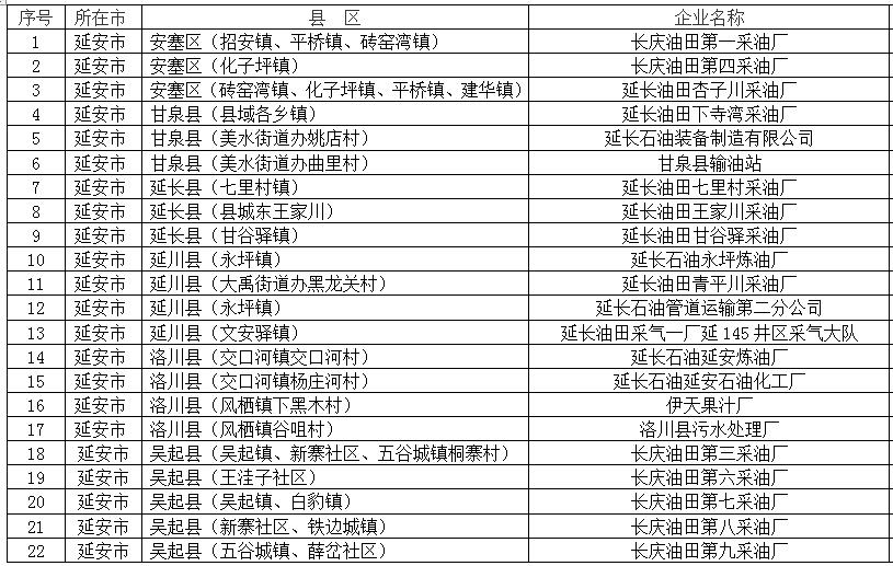 延安市土壤環(huán)境重點(diǎn)監(jiān)管企業(yè)名單