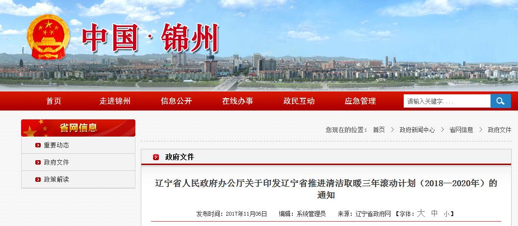 遼寧省人民政府辦公廳關(guān)于印發(fā)遼寧省推進清潔取暖三年滾動計劃(2018—2020年)的通知