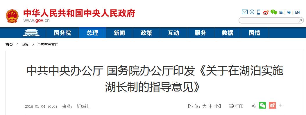為深入貫徹黨的十九大精神,全面落實(shí)《中共中央辦公廳、國務(wù)院辦公廳印發(fā)〈關(guān)于全面推行河長制的意見〉的通知》要求,進(jìn)一步加強(qiáng)湖泊管理保護(hù)工作,現(xiàn)就在湖泊實(shí)施湖長制提出如下意見。