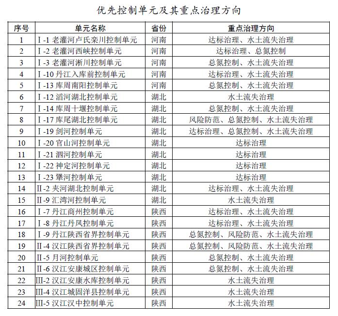 對(duì)43個(gè)控制單元逐一核定面積、水資源、污染源、人口、耕地、水土流失等情況,將未達(dá)到或未穩(wěn)定達(dá)到水質(zhì)目標(biāo)、總氮濃度高、水土流失較重、環(huán)境風(fēng)險(xiǎn)較高的24個(gè)控制單元作為優(yōu)先控制單元,明確治理方向和治理任務(wù),加大治理力度。其中,達(dá)標(biāo)治理類11個(gè),水土流失治理類19個(gè),總氮控制類10個(gè),風(fēng)險(xiǎn)防范類3個(gè)(部分優(yōu)先控制單元涉及多個(gè)重點(diǎn)治理方向)。