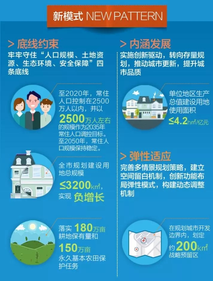 人口規(guī)模方面,嚴(yán)格控制人口規(guī)模,緩解人口快速增長與資源環(huán)境緊約束之間的矛盾,至2035年常駐人口控制在2500萬人左右,并作為長期調(diào)控目標(biāo)。在常住人口基礎(chǔ)上,以實際服務(wù)人口需求進行公共資源配置,提高城市對服務(wù)人口的基本保障能力。城市住房養(yǎng)老、基礎(chǔ)教育、體育、綠地等基本公共服務(wù)設(shè)施以滿足常住人口需求為主。水、能源、安全、交通等設(shè)施需要滿足實際服務(wù)人口的需求,規(guī)劃考慮在常住人口基礎(chǔ)上預(yù)留20%以上的彈性。文化、醫(yī)療、教育、體育等高等級公共服務(wù)設(shè)施需要滿足常住人口以及更大區(qū)域內(nèi)人群的需求。