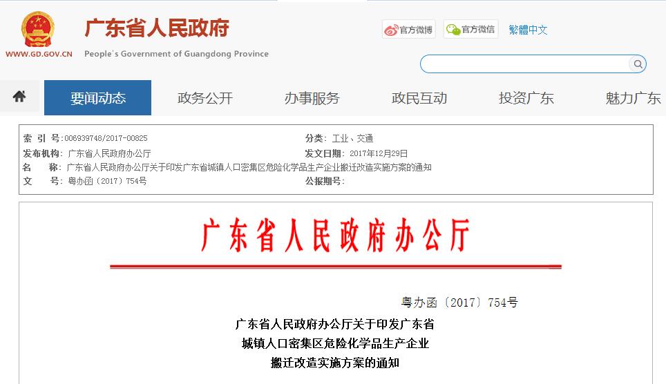 廣東省城鎮(zhèn)人口密集區(qū)危險(xiǎn)化學(xué)品 生產(chǎn)企業(yè)搬遷改造實(shí)施方案
