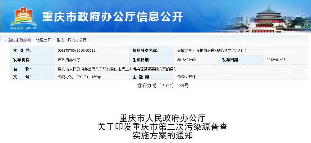 關(guān)于印發(fā)重慶市第二次污染源普查實(shí)施方案的通知