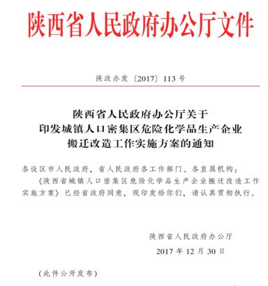 陜西省城鎮(zhèn)人口密集區(qū)危險(xiǎn)化學(xué)品生產(chǎn)企業(yè)搬遷改造工作實(shí)施方案