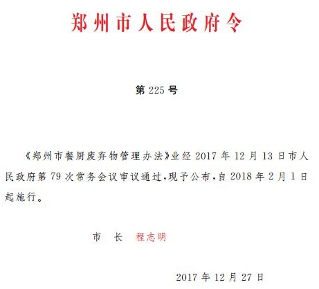 為了加強餐廚廢棄物管理,維護城市市容環(huán)境衛(wèi)生,保障食品安全,促進資源循環(huán)利用,近日,鄭州市人民政府印發(fā)了《鄭州市餐廚廢棄物管理辦法》。詳情如下: