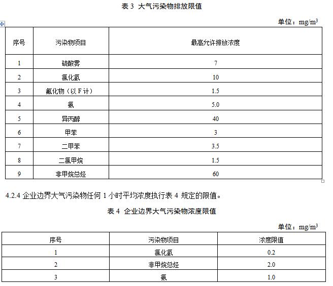 4.2.4企業(yè)邊界大氣污染物任何1小時平均濃度執(zhí)行表4規(guī)定的限值。