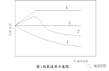 高含油有機化工廢水污染物是按照有毒和難降解特點進行分類的,大致可分為四類:第一類,具有良好的降解性能、無毒的有機物;第二類,降解性能較差、無毒的有機物;第三類,當(dāng)液體濃度較低的時候,容易被微生物降解,但是當(dāng)液體濃度高的時候,廢水會抑制微生物的活性,是一種無毒的有機物;第四類,當(dāng)液體濃度較低的時候會對微生物產(chǎn)生抑制且有毒的有機物。廢水中不同有機物的耗氧速率示意圖如圖1所示。
