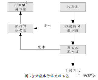 調(diào)節(jié)罐底部的油自動流入油泥浮渣的池子當(dāng)中,經(jīng)過渣泵傳送到脫水罐之中進行脫水。將混凝沉淀池中剩余的污泥進行定期地清理,并用泵傳送到脫水罐中。油泥進行濃縮脫水的時候,使用離心機的進料泵間油泥傳送到脫水機中,進而形成泥餅,可直接送到鍋爐房中當(dāng)作燃料使用。還可加入高分子絮凝劑,使陰陽離子型的聚丙烯酰胺(PAM)進行脫水。脫水后的廢水自動流入到含油的污水池當(dāng)中,利用污水提升泵將含油的污水進行調(diào)節(jié),并處理。