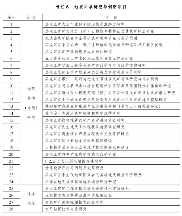(一)基礎(chǔ)地質(zhì)與礦產(chǎn)資源調(diào)查。加大財(cái)政對(duì)公益性、基礎(chǔ)性地質(zhì)工作的支持力度,繼續(xù)實(shí)施地質(zhì)勘查三年專項(xiàng)行動(dòng),圍繞重要成礦帶、重要礦集區(qū)、大型礦床所在地區(qū),劃定重點(diǎn)調(diào)查評(píng)價(jià)區(qū)(重大工程)44個(gè),其中1∶5萬(wàn)煤炭調(diào)查6個(gè)、1∶5萬(wàn)金屬礦產(chǎn)調(diào)查21個(gè)、1∶5萬(wàn)石墨礦產(chǎn)調(diào)查4個(gè)、1∶5萬(wàn)高嶺土礦產(chǎn)調(diào)查2個(gè)和1∶10萬(wàn)地下熱水礦產(chǎn)調(diào)查11個(gè)。在大小興安嶺和東部成礦區(qū)等重點(diǎn)成礦區(qū)帶,開展1∶5萬(wàn)區(qū)域地質(zhì)礦產(chǎn)調(diào)查,覆蓋率達(dá)到可調(diào)查面積的65%,提高我省基礎(chǔ)調(diào)查工作程度;在哈爾濱、牡丹江、伊春、黑河、大興安嶺等地開展航磁、化探異常查證工作,力爭(zhēng)圈定可供進(jìn)一步工作的找礦靶區(qū)150處。