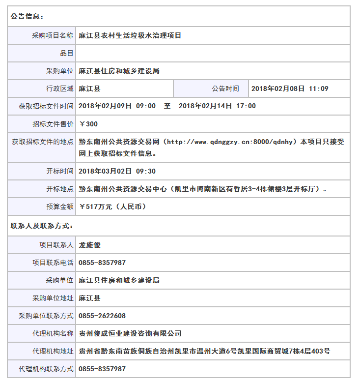 麻江縣農(nóng)村生活垃圾水治理項目采購公告
