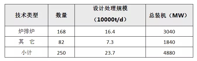 根據(jù)中國(guó)環(huán)聯(lián)研究院數(shù)據(jù)統(tǒng)計(jì),截至2016年年底,投入運(yùn)行的生活垃圾焚燒發(fā)電廠有250座,總處理能力為23.7萬(wàn)噸/日,總裝機(jī)約為4880MW。其中采用爐排爐的焚燒發(fā)電廠有168座,合計(jì)處理能力達(dá)到16.4萬(wàn)噸/日,裝機(jī)達(dá)到3040MW;其余主要為采用流化床的焚燒發(fā)電廠,總計(jì)有82座,合計(jì)處理能力為7.3萬(wàn)噸/日,裝機(jī)達(dá)到1840MW。