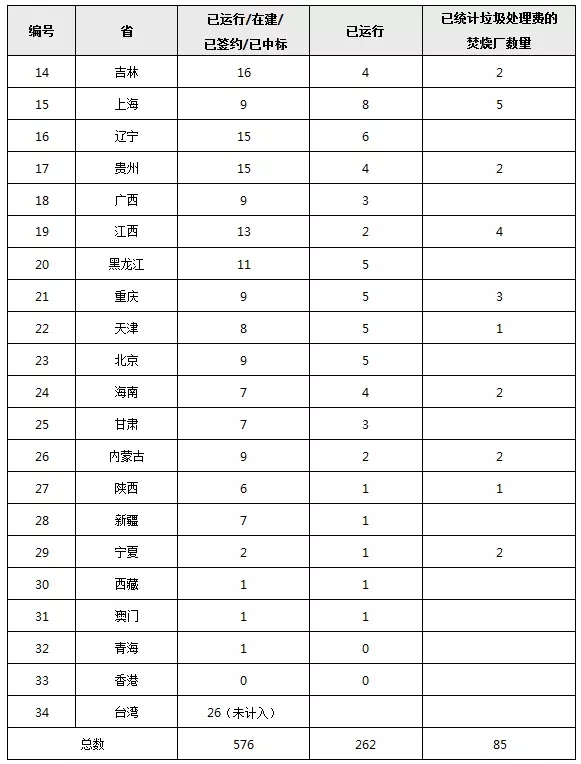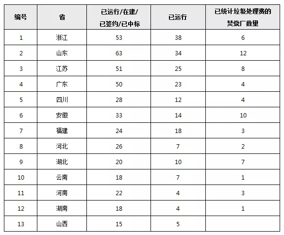 全國(guó)各省市垃圾焚燒發(fā)電廠建投及運(yùn)營(yíng)數(shù)量