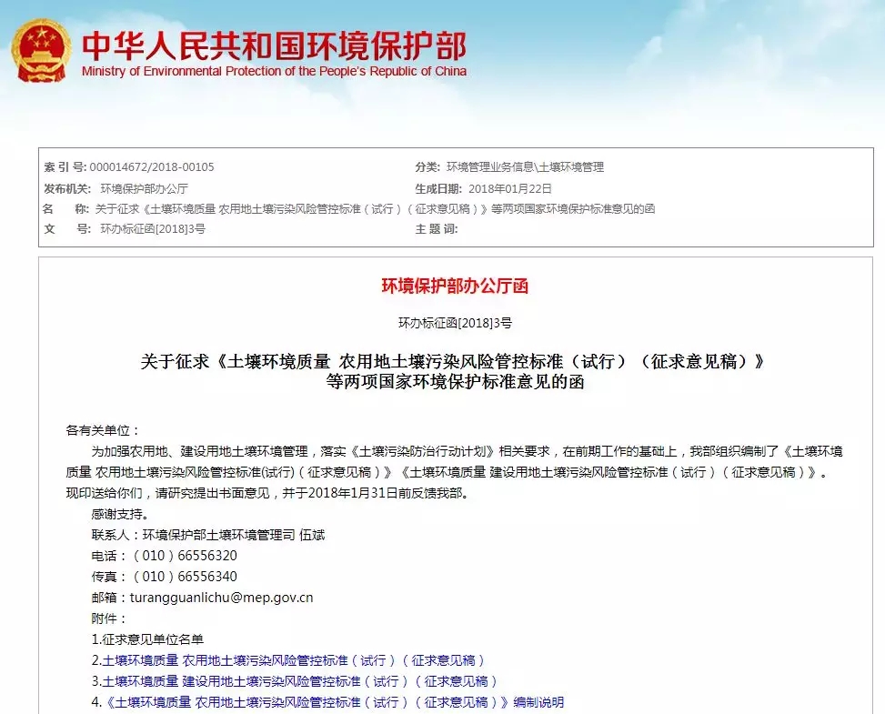 環(huán)保部辦公廳近日發(fā)布關于征求《土壤環(huán)境質量 農(nóng)用地土壤污染風險管控標準(試行)(征求意見稿)》等兩項國家環(huán)境保護標準意見的函