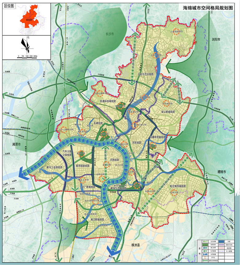 本次規(guī)劃范圍包括:株洲市城市總體規(guī)劃確定的2020年中心城區(qū)范圍+十大新城拓展范圍??傄?guī)劃面積約460平方公里,研究范圍886平方公里。