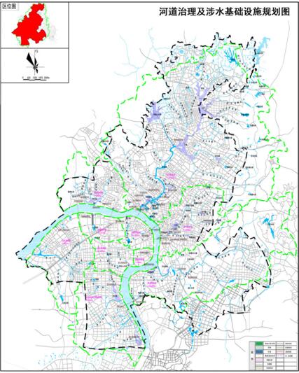 水環(huán)境系統(tǒng)規(guī)劃——通過濕地系統(tǒng)、低影響開發(fā)設施系統(tǒng)和雨水末端設施系統(tǒng)的構(gòu)建,削減非點源污染,保障水環(huán)境安全。規(guī)劃措施包括:雨污分流逐步改造、黑臭水體綜合治理、初雨污染全程控制。