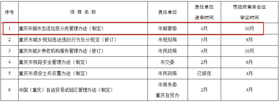 重慶市2018年立法工作計(jì)劃公布,涉及水污染防治、生活垃圾分類、海綿城市建設(shè)等眾多環(huán)保類立法項(xiàng),詳情如下: